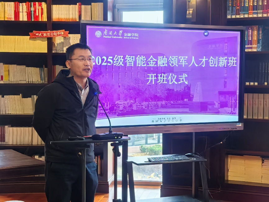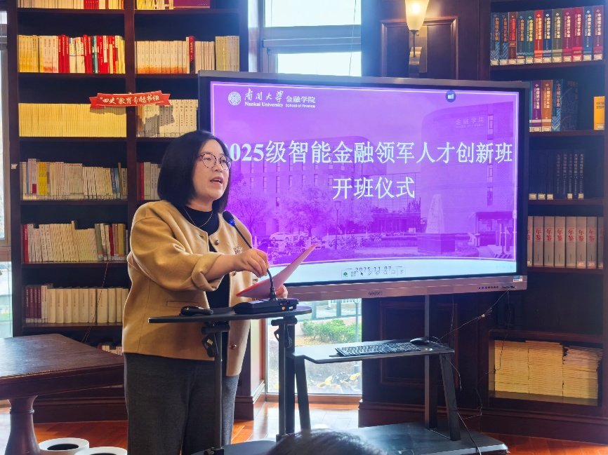 11月7日,2025级智能金融领军人才创新班开班仪式在宁一弘道书斋如约举行。金融学院党委书记张尧,院长范小云,副院长贺佳,智能金融领军人才培养项目负责人、2025级智能金融领军人才创新班班导师刘澜飚,数字金融研究所所长王博,本科教学办王金连、赵淼,2025级辅导员刘向龙以及2025级智能金融领军人才创新班全体同学参加开班仪式。开班仪式由贺佳主持。