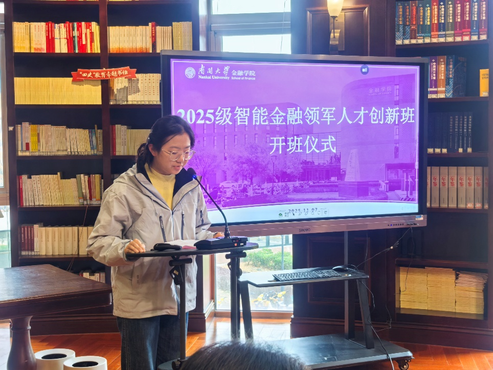 11月7日,2025级智能金融领军人才创新班开班仪式在宁一弘道书斋如约举行。金融学院党委书记张尧,院长范小云,副院长贺佳,智能金融领军人才培养项目负责人、2025级智能金融领军人才创新班班导师刘澜飚,数字金融研究所所长王博,本科教学办王金连、赵淼,2025级辅导员刘向龙以及2025级智能金融领军人才创新班全体同学参加开班仪式。开班仪式由贺佳主持。