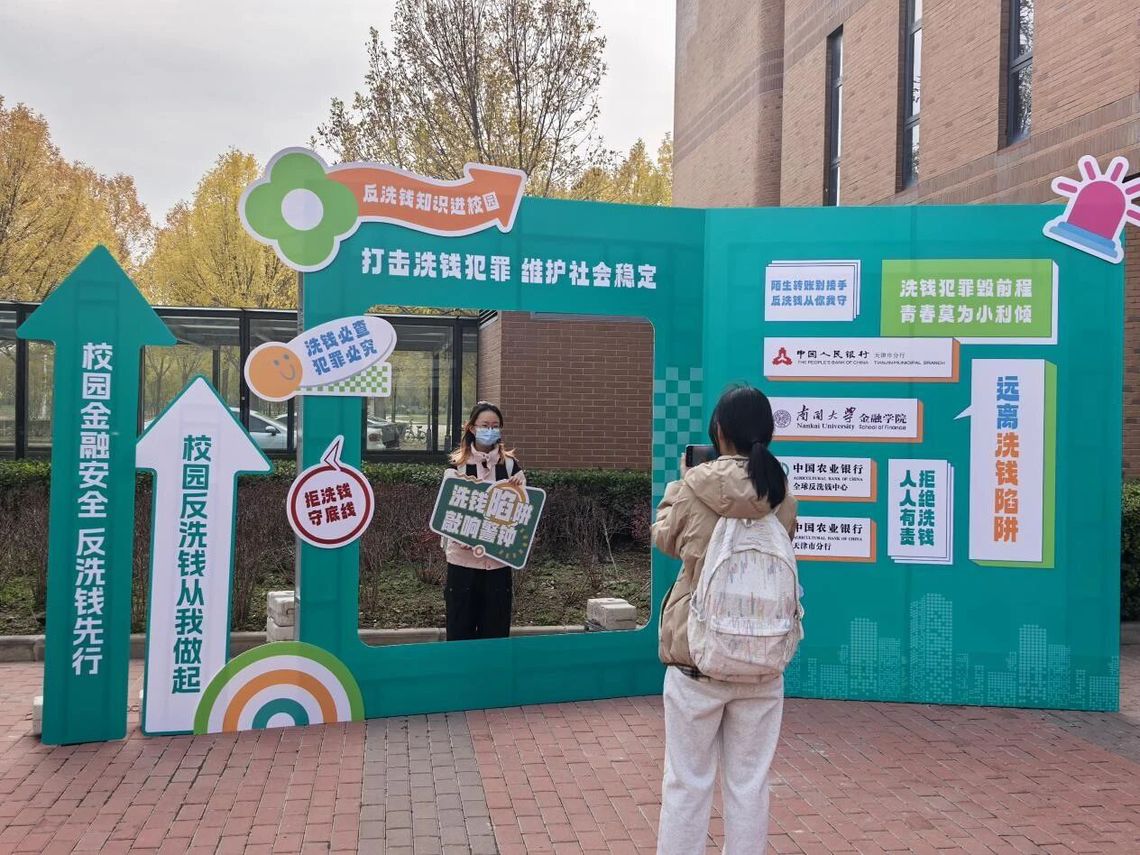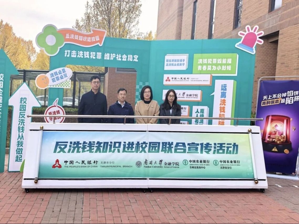 11月6日下午,“反洗钱知识进校园”联合宣传活动开幕仪式在南开大学金融学院顺利举行。本次活动由南开大学金融学院、中国人民银行天津市分行、中国农业银行全球反洗钱中心及中国农业银行天津市分行联合主办,旨在向青年学生普及反洗钱知识,筑牢校园金融安全防线。南开大学金融学院副院长贺佳教授、辅导员代表,农行全球反洗钱中心高级专员金琦、申晓聃,农行天津市分行内控与法律合规部副总经理祁燕泰,以及来自中国人民银行天津市分行、中国农业银行的工作人员出席开幕仪式。