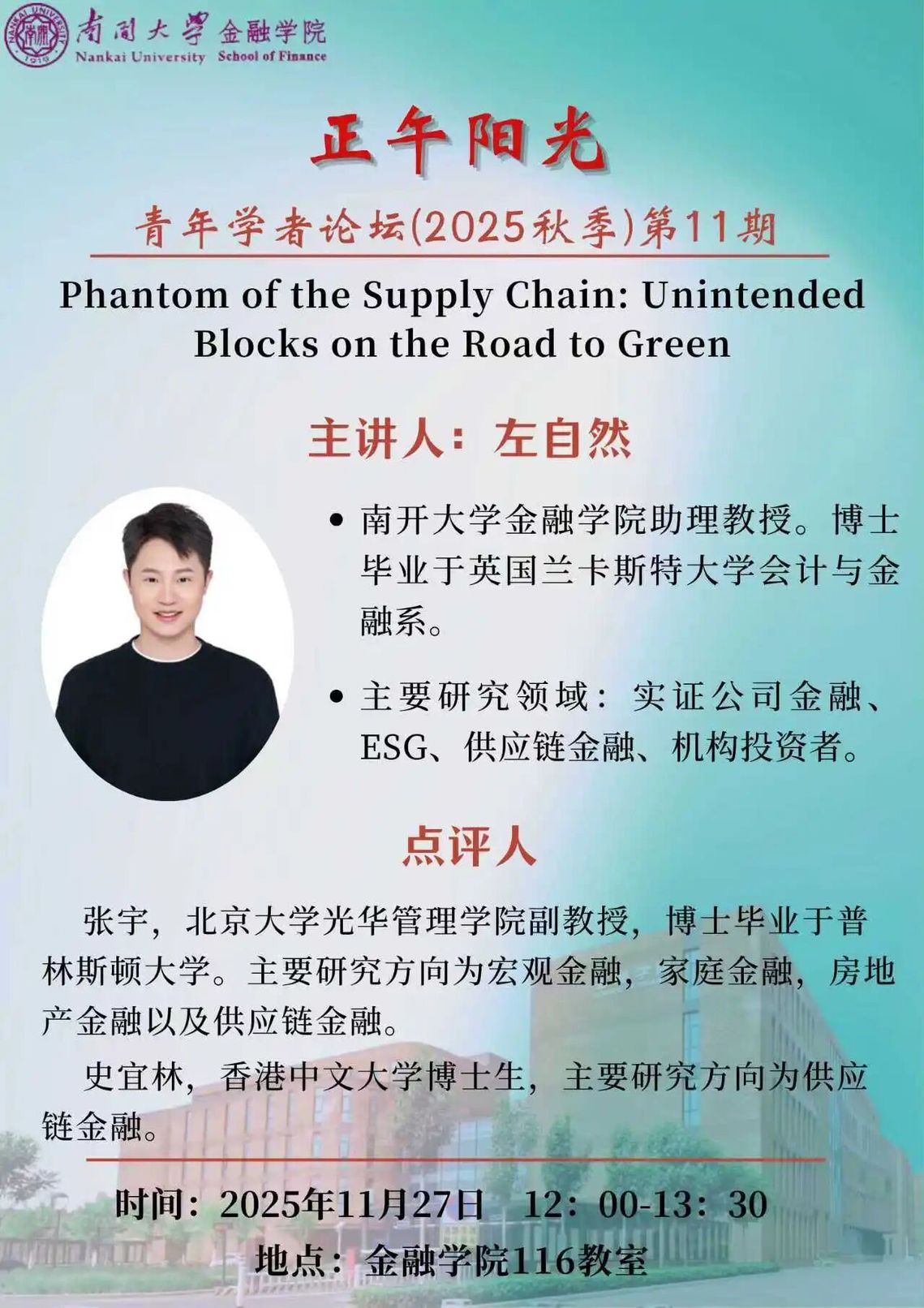 讲座题目:Phantom of the Supply Chain: Unintended Blocks on the Road to Green