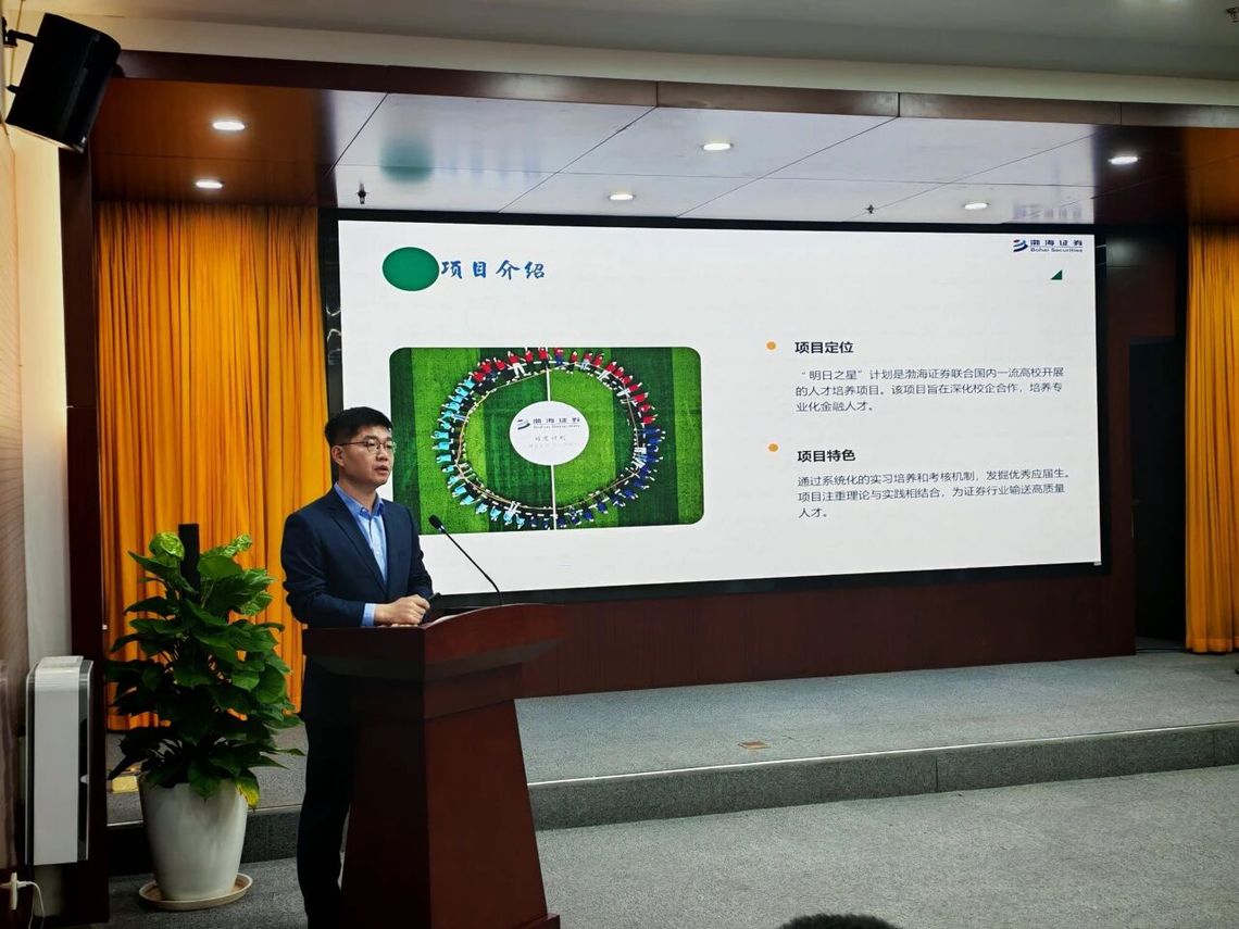 渤海证券沙立朝详细介绍了公司的发展历程、组织架构、核心业务及企业文化。渤海证券公司业务范围广泛,涵盖证券经纪、承销保荐、自营投资等多个领域,凭借专业创新的发展理念屡获行业权威认可。沙立朝重点解读了“明日之星计划”及人才培养虚拟班项目,为同学们未来的职业发展提供了清晰指引,并结合证券行业特点,建议同学们夯实专业基础、提升核心技能,提前备考证券从业资格、CFA等相关证书,为未来从事相关工作做好充分准备。