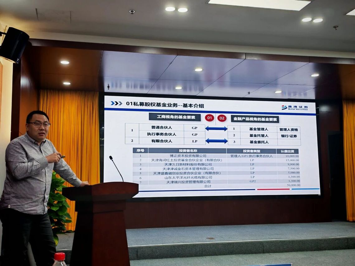 渤海证券国盛资本子公司副总经理谢耀贤则聚焦私募股权基金业务,从行业概述、基础概念、运作模式等方面进行了详细讲解。他结合自身丰富的从业经历,用通俗易懂的语言区分了一级市场与二级市场、自有资金与募集资金的核心差异,介绍了私募股权基金“融、投、管、退”的完整运作流程。谢耀贤分享了多个真实投资案例,分析了私募行业不同发展阶段的从业者特点,强调了团队稳定性、复合背景、股权投资思维在行业发展中的重要性,让同学们对私募股权基金行业有了全面且深刻的认识。