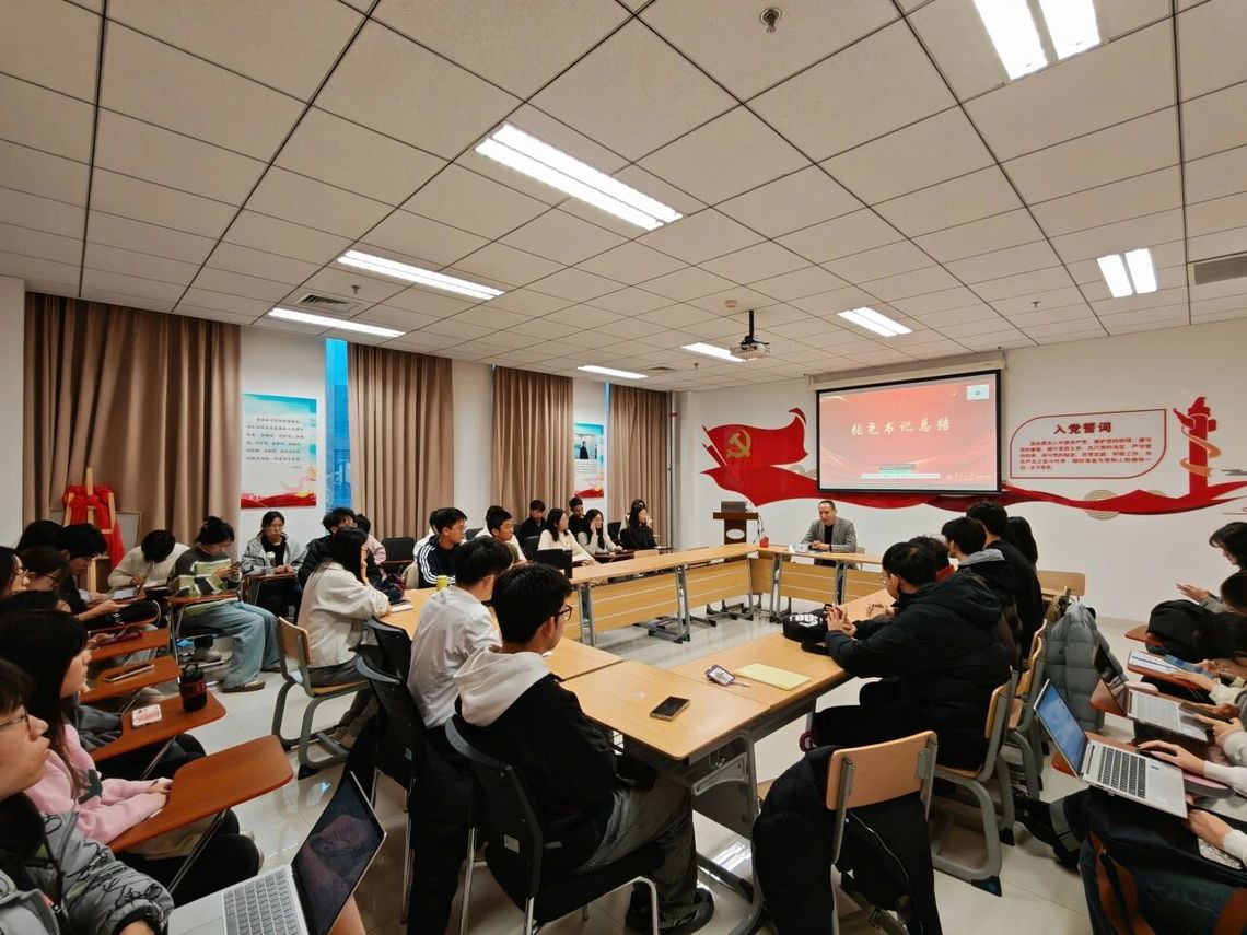 活动最后,学院党委书记张尧对本次联学活动进行点评并提出五点希望。一是深学细悟习近平经济思想,学生党员要走在前列,将理论融入专业实践,用专业视角分析时事问题;二是立足长远做好人生规划,提前适应职场更高要求与压力;三是培养跨学科思维,契合行业需求,主动更新知识体系;四是在不确定性中保持党性定力,将时代压力转化为成长动力,发挥先锋模范作用;五是兼顾努力与正确选择,结合自身特长规划人生道路,实现独特价值。