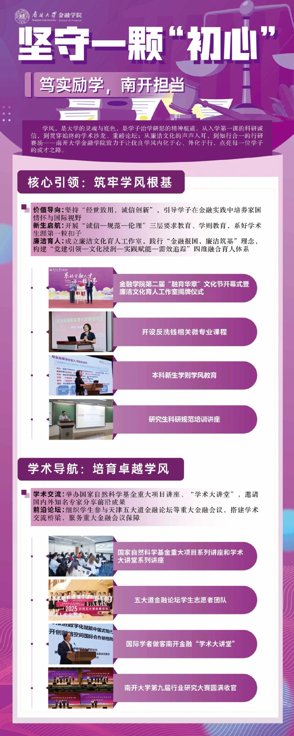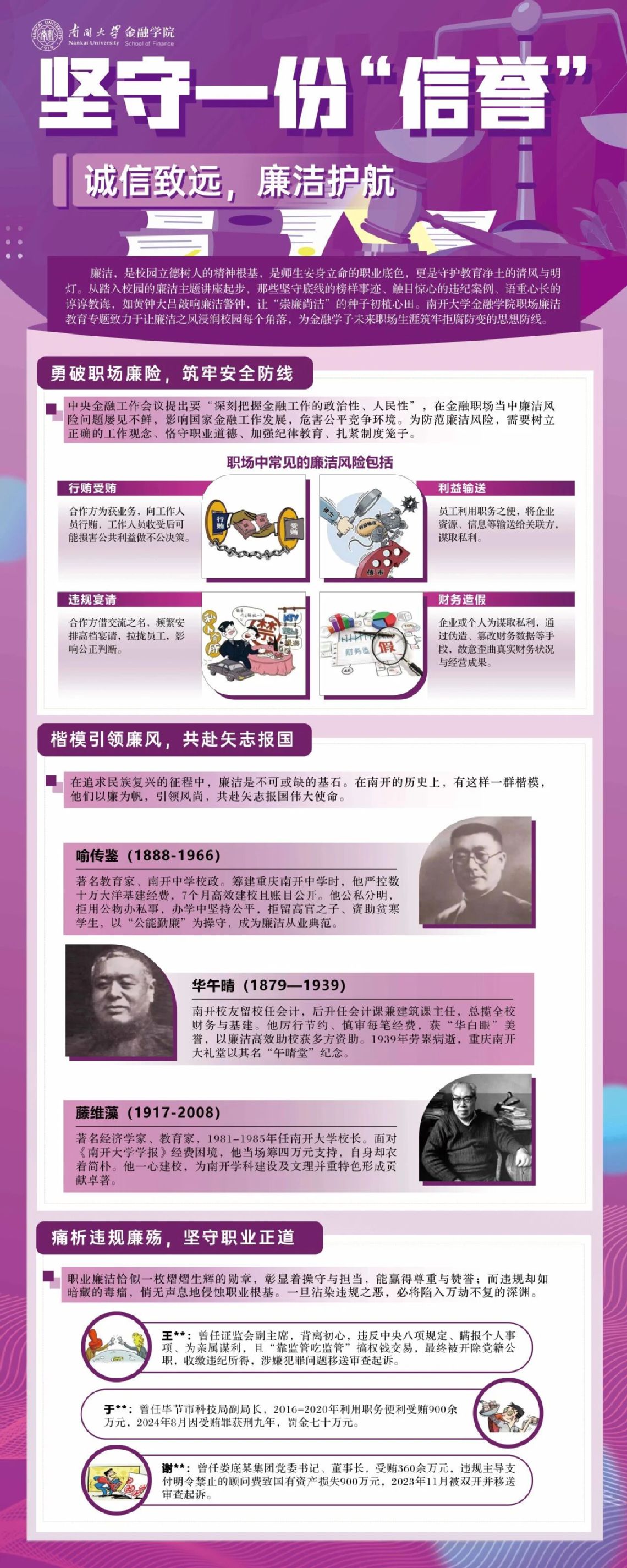 以学风铸魂,以诚信立身。此次展出的学风系列展板,既是学术诚信的警示录,也是金融廉洁的践行指南。诚邀金融金融学院全体师生前往学院一楼大厅参观学习,将诚信廉洁刻入心中,把担当使命落到实处,共同营造风清气正的学术生态,筑牢南开金融学风建设的坚实根基!