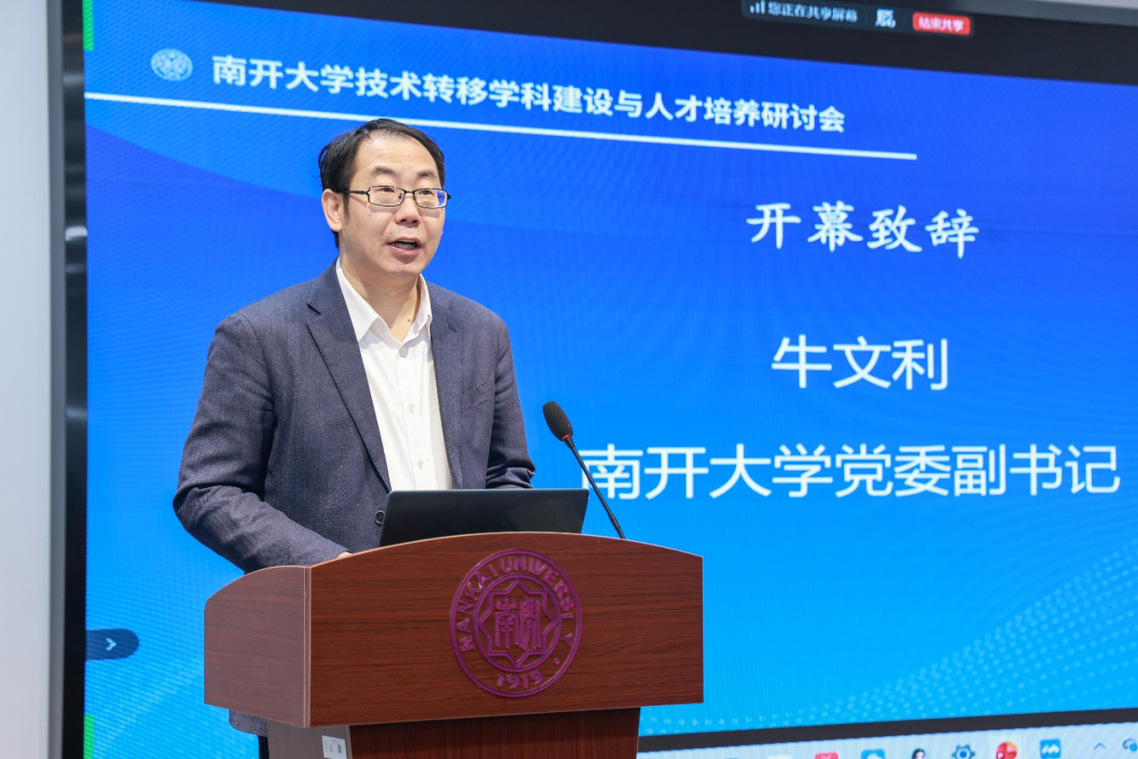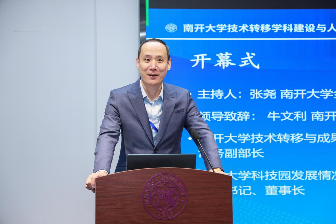 南开大学党委副书记牛文利在致辞中表示,当前是推动教育、科技、人才“三位一体”协同融合发展的关键时期,南开大学作为肩负国家使命的高等学府,始终将学科建设与人才培养同国家战略需求紧密结合。此次研讨会搭建了政企校多方交流平台,旨在凝聚共识、汇聚智慧,探索具有南开特色的技术转移学科发展模式,培养技术转移复合型人才,为国家创新体系建设注入南开力量。
