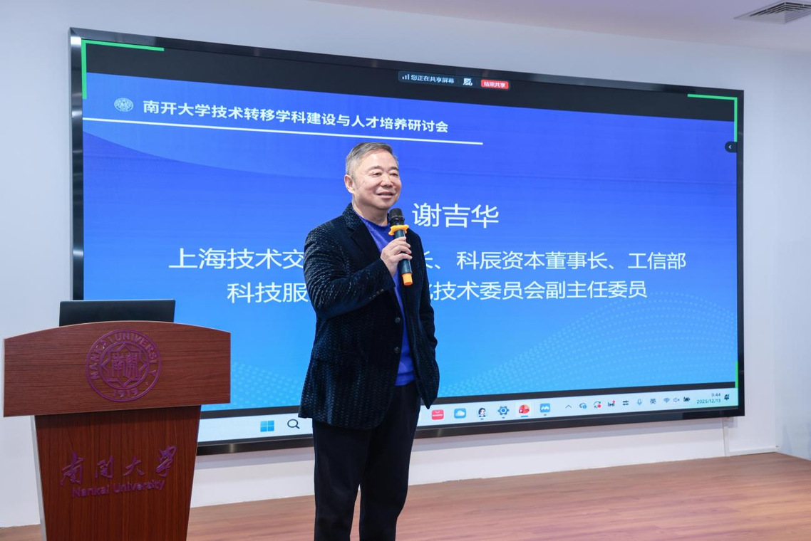为深度落实国家创新驱动发展战略,破解技术转移学科建设瓶颈,培养高素质复合型技术转移人才,2025年12月13日,南开大学技术转移学科建设与人才培养研讨会在南开大学科技园成功举办。本次研讨会由南开大学科学技术研究部指导,南开大学金融学院、天津南开大学资产经营有限责任公司主办,南开大学金融学院专硕中心、天津南开大学科技园有限责任公司承办,天津天开发展集团有限公司、天津联创科技发展有限公司联合承办,来自政府部门、高校院所、行业企业、专业服务机构的嘉宾与南开大学首届技术转移硕士项目全体同学齐聚一堂,共同研讨技术转移学科发展与人才培养创新道路。