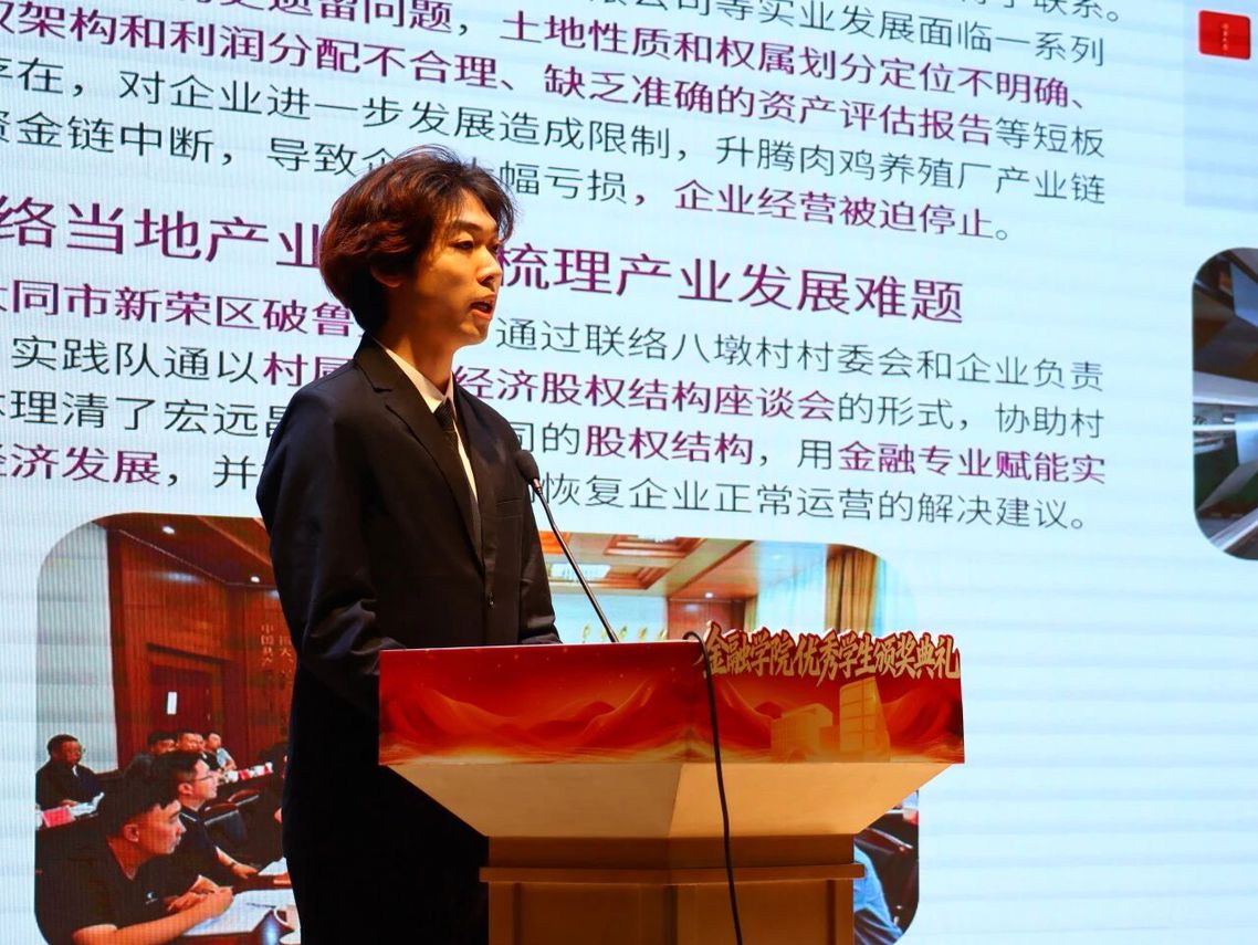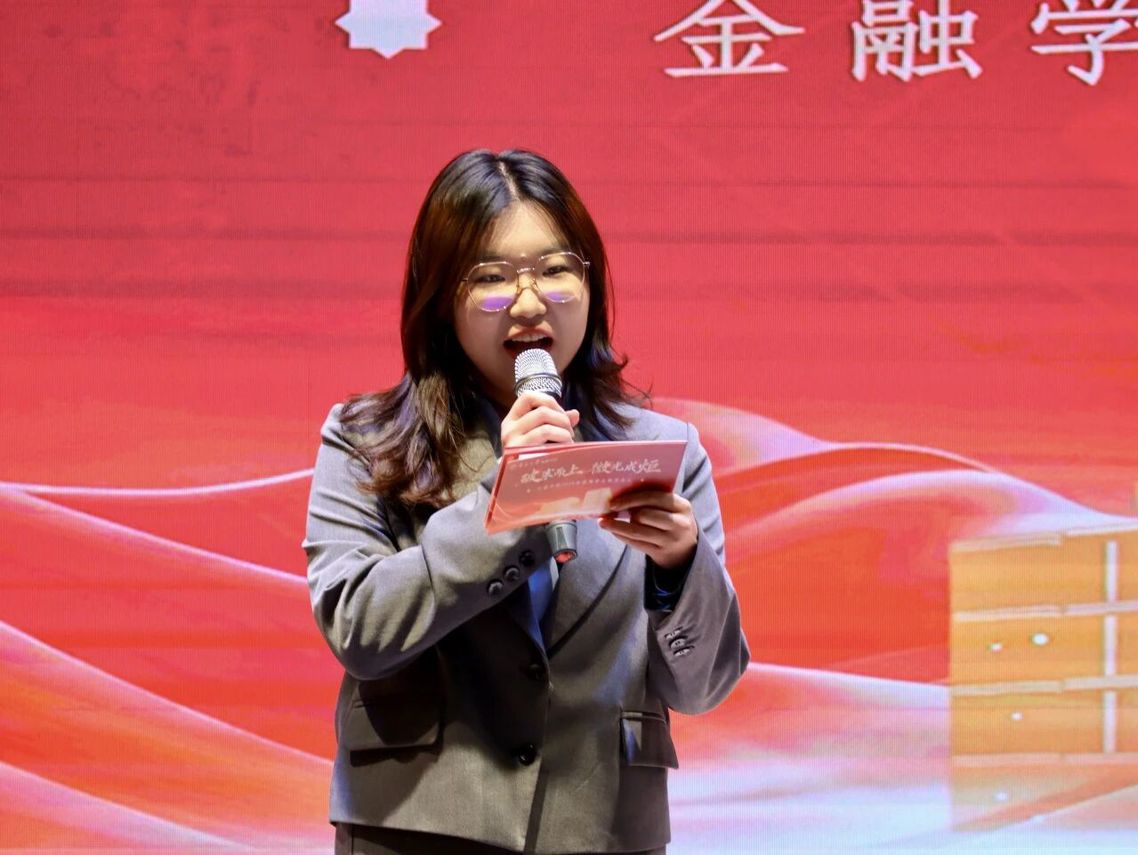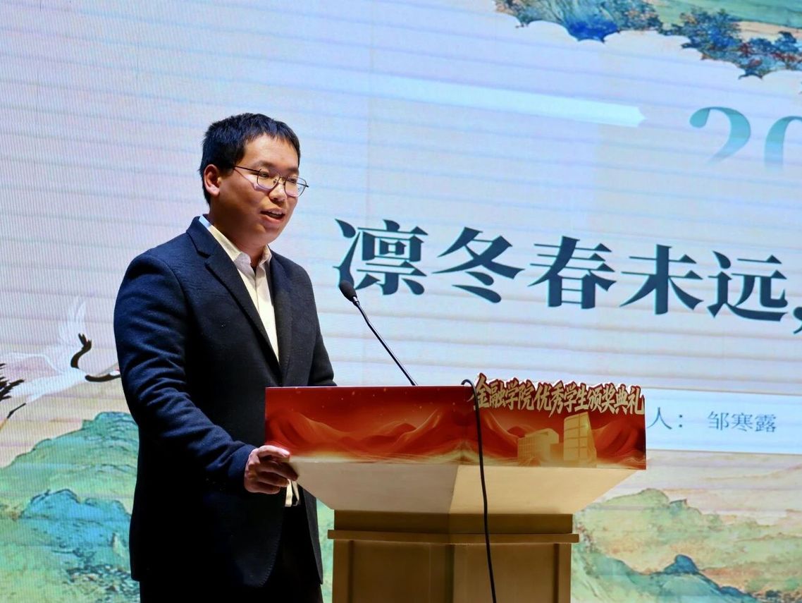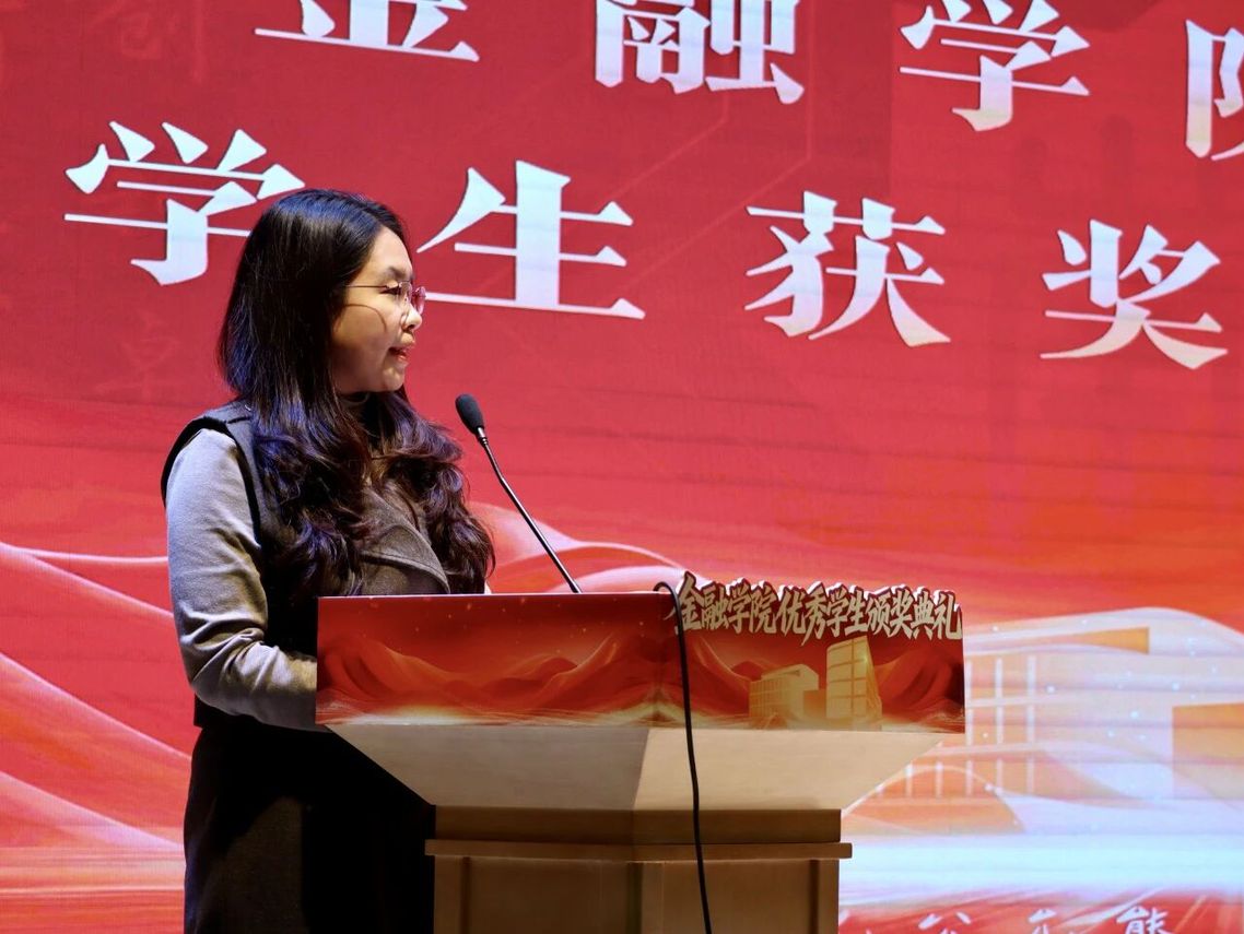 高珊在总结过去一年学生获奖情况时指出,2025年金融学院紧扣“立德树人”根本任务,延续“公能育人”理念,在党团建设、实践服务、竞赛创新等多个领域取得丰硕成果。在此之际,学院决定为获奖团队代表和个人代表进行表彰,希望全体同学以榜样为力量,在青春赛道上续写精彩。