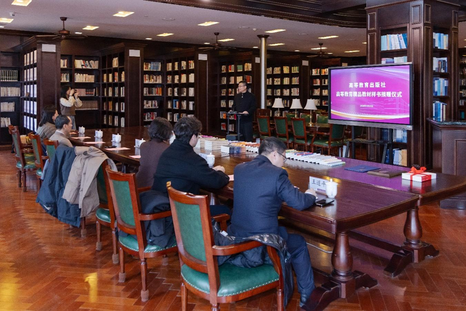 1月22日,高等教育出版社精品教材样书捐赠仪式在金融学院宁一弘道书斋举行。高等教育出版社经管法事业部主任于明、市场与教学服务部华北区负责人孙毅伟等一行,南开大学金融学院党委书记张尧、院长范小云、副院长陈璐及教师代表共同出席。仪式由金融学院副院长陈璐主持。
