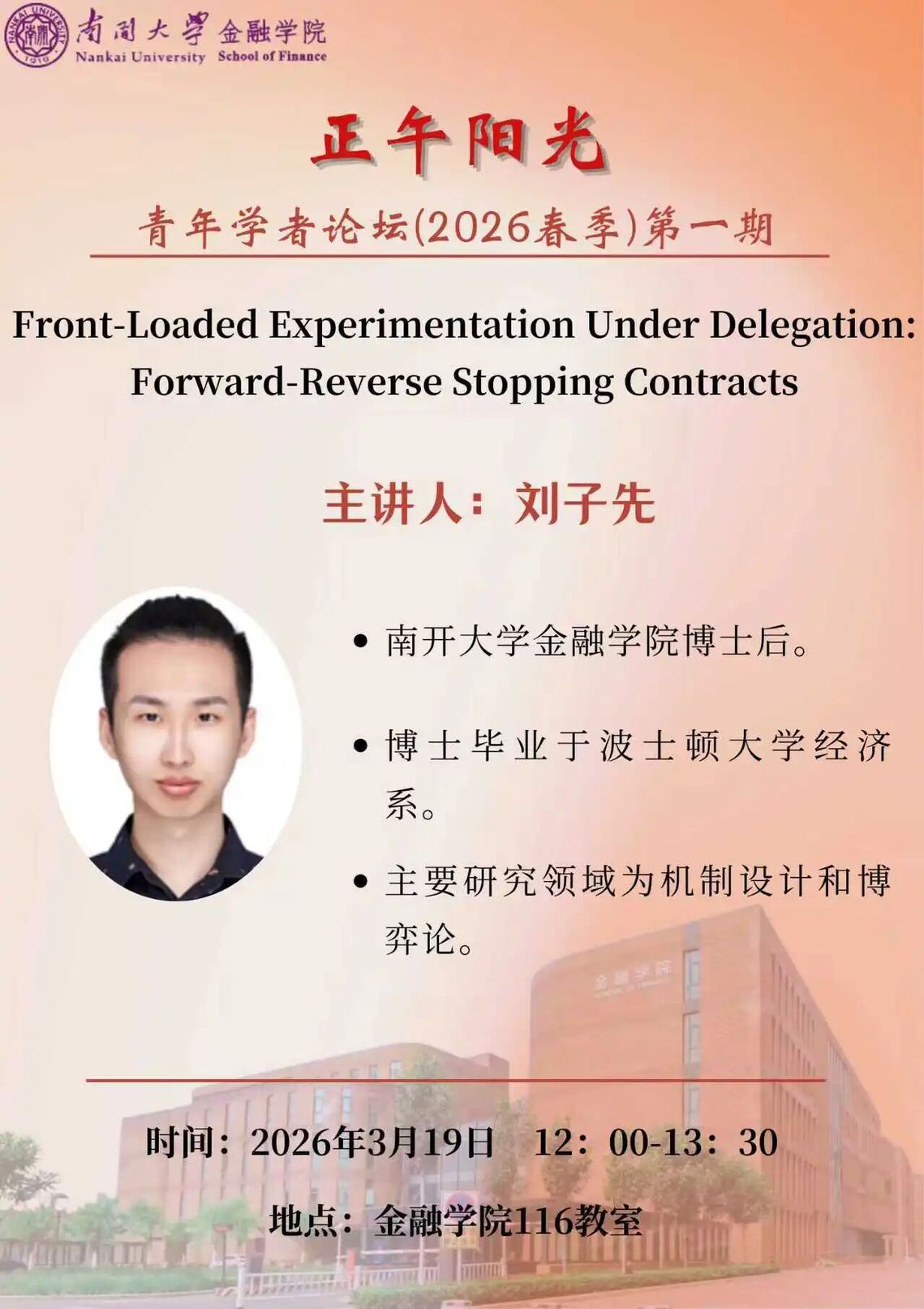 讲座题目:Front-Loaded Experimentation Under Delegation: Forward-Reverse Stopping Contracts