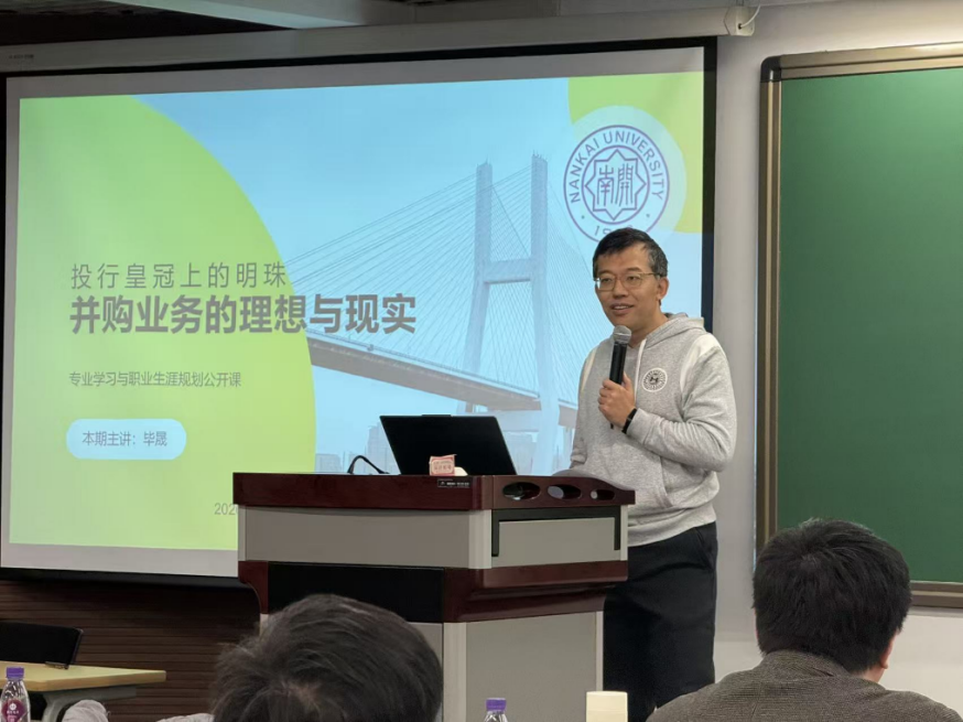 课程伊始,毕晟校友结合自身二十余年资本市场从业经历,带领同学们走进投资银行的专业世界。从会计“四大”转战投行,毕晟校友先后供职于三家投行机构,积累了丰富的实战经验。他直言,投行尤其是并购业务并非“轻松赛道”,行业的高回报始终与高压力相伴,同时鼓励在场同学主动表达、积极探索,幽默生动的分享让课程氛围轻松愉悦。
