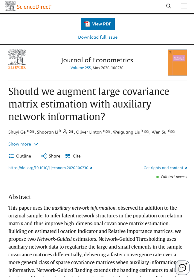 《Journal of Econometrics》Volume 255, May 2026, 106236