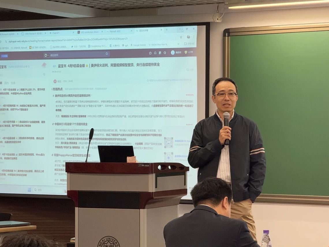职业规划方面,董阳阳提出金融投研从业者三大核心素养:一是保持热爱与激情,以兴趣为长期发展驱动力;二是秉持乐观坚韧的心态,接受投资中的不完美,坚守认知范围内的机会;三是提升沟通交往能力,在调研与交流中挖掘核心信息。针对当下AI技术浪潮,他重点强调AI对金融行业的颠覆性改变,指出AI已能替代较大比重初级研究员的案头工作,极大拉平普通学习者与专业机构的信息差。他鼓励同学们主动掌握大模型、AI智能体等工具,借助专业资讯平台与AI工具快速提升投研能力,实现弯道超车。