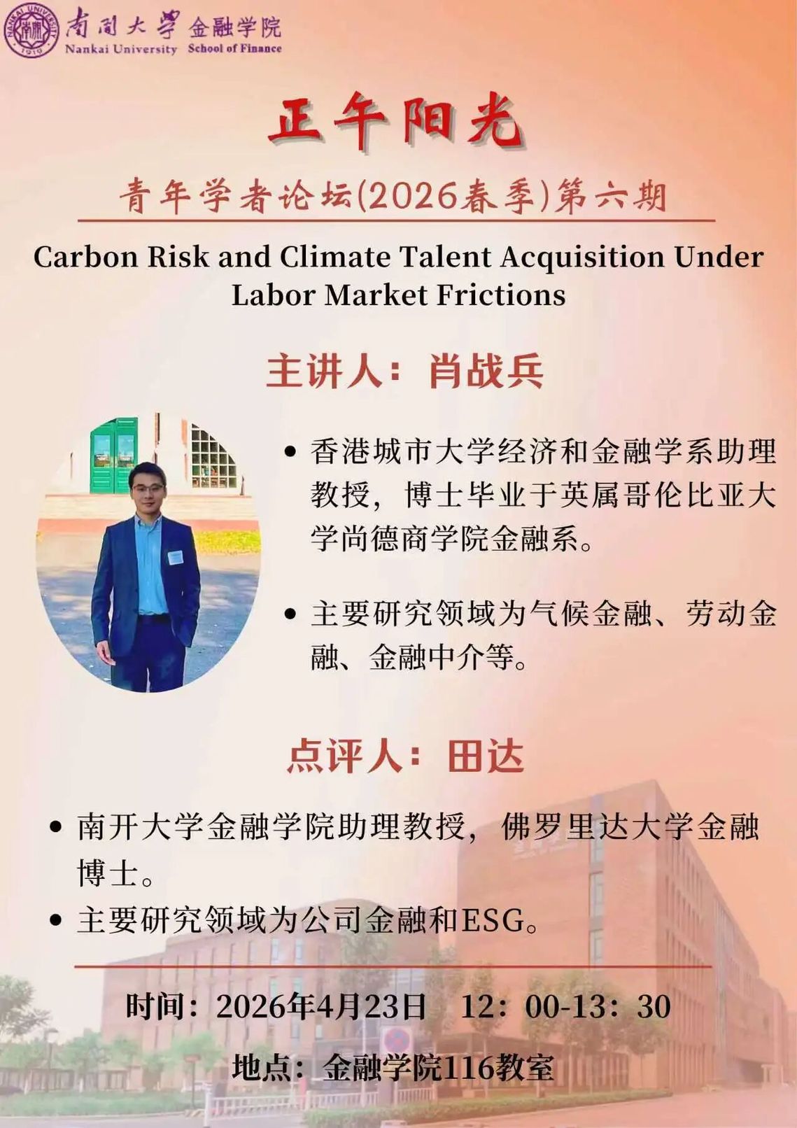 讲座题目:Carbon Risk and Climate Talent Acquisition Under Labor Market Frictions